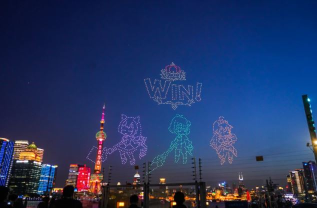 1500 controllable drones were used to create the massive QR code in the sky over Shanghai. The event was to celebrate the 1st anniversary of the Chinese release of the video game.
