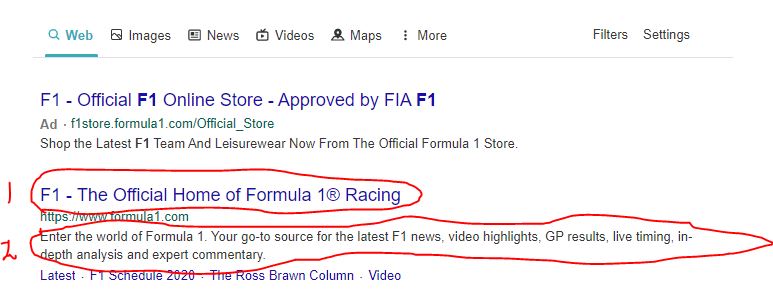 If the user is visiting your website via a search on Google, then the first thing that they will see regarding your blog post is the meta title and meta description. Highlighted in red in the below (poorly created) screenshot is the meta title (1) and meta description (2). Every indexable page on a search engine has a meta title and meta description.
